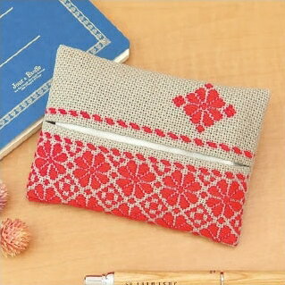 こぎん刺しの楽しさが感じられるようになってきたら、くるみボタンやティッシュケースなど日常で頻繁に使う物に応用してみましょう。