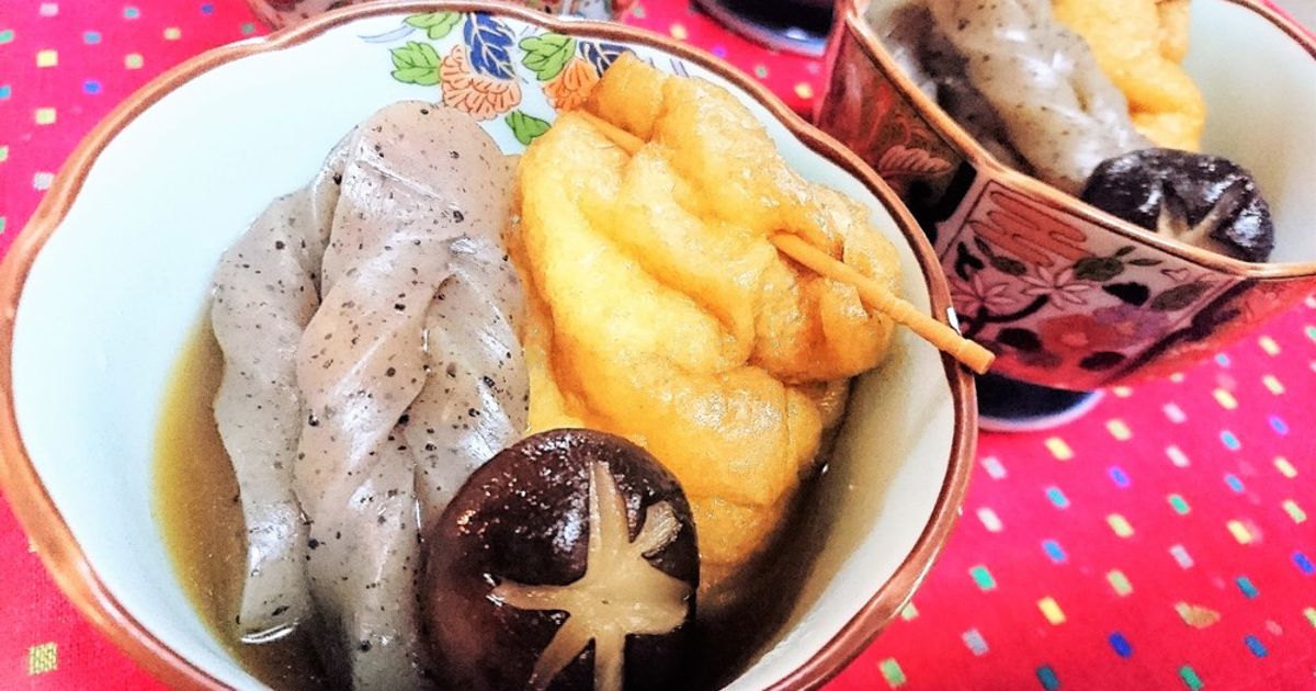 「鏡もち★味しみしみ~【もち巾着の煮物】」の作り方。【働くママ】の工夫料理(^^♪ 鏡もちを活用しこんな1品はいかが?とろ~りお餅入り巾着とお好みの食材で優しい味を食卓に! 材料: お餅、小揚げ、こんにゃく